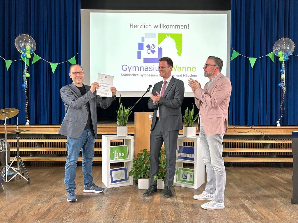 Ja, das ist eine gute Frage. Ich bin gerne Schulleiter. Vor allen Dingen, weil das Kollegium am Gymnasium Wanne mir den Job wirklich leicht macht. Denn die sind alle sehr engagiert und belastbar und kreativ und wollen coole Sachen an unserer Schule durchsetzen. Insofern macht das total Spaß, mit denen zusammenzuarbeiten